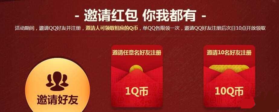 活动期间,邀请QQ好友并注册,邀请人可领取相应的Q币,单QQ各限领一次,邀请QQ好友注册后次日10点开放领取