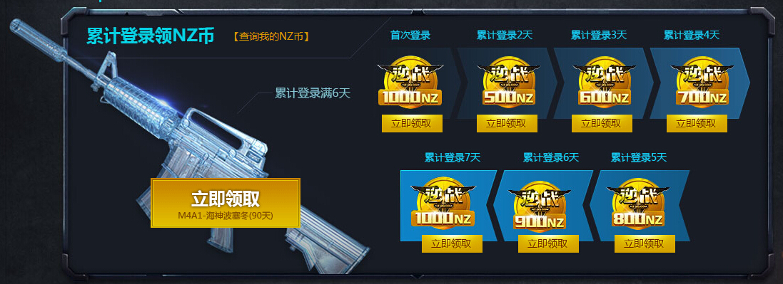 活动期间,累计登录游戏可获得NZ币,同时完成每天的任务也可以获得NZ币。但每天每个任务限领取一次NZ币。