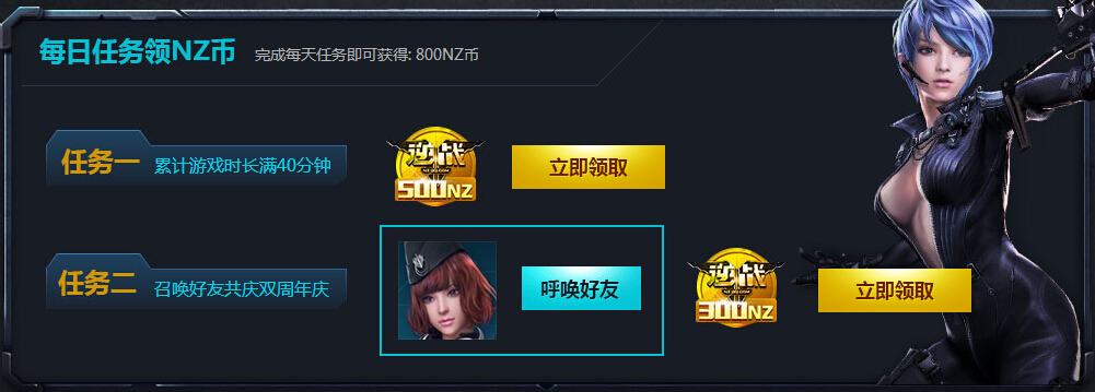 逆战双周年免费季 全民福利每天NZ币直接领取 活动地址