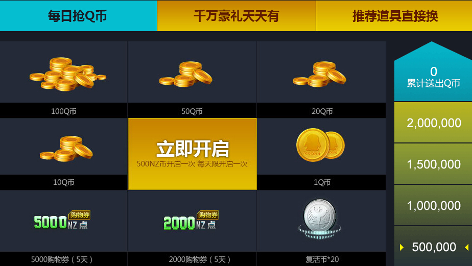 活动期间,本活动获得的NZ币可用来兑换Q币、NZ点、抽取实物奖励、稀有道具或直接兑换推荐道具。