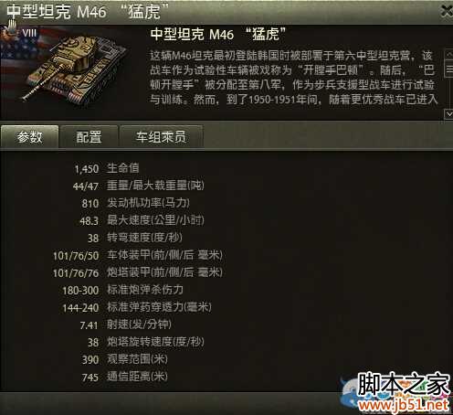 以上就是小编给大家带来的坦克世界M46猛虎属性介绍的全部内容了,希望大家喜欢,祝大家游戏愉快!更多实用攻略,更多最新消息请继续关注JB51!