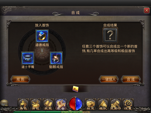 在 20级上下的时候,我们就会根据系统提示开启装备合成功能,我们会发现每次需要三个首饰来合成一个首饰,并且必定会得到一个新的首饰,但是属性和种类是随机的,比如说3个戒指可能会合成手镯,3个项链会合成到戒指,所以我们需要掌握一定的技巧,让合成的装备不会偏离我们的预期目标太多。