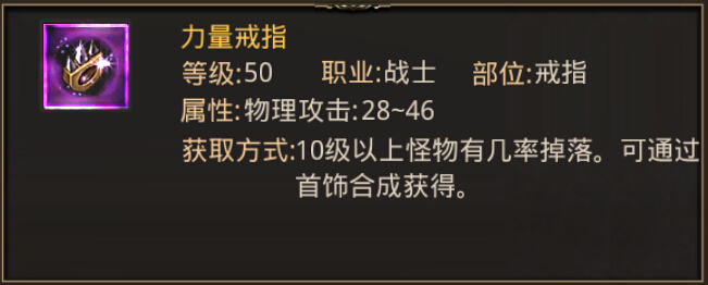 首先,来看力量戒指的属性。物理攻击28-46。那么,一对力量戒指的物理攻击是在56-92。