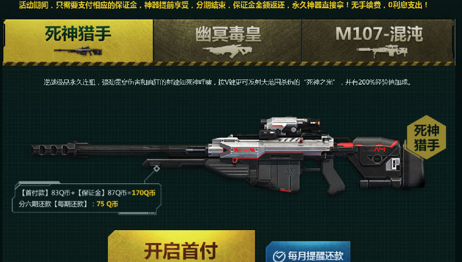 7.本期三把神器每个QQ仅能分期购买一次,分期付款将无法获得战队声望值赠送。