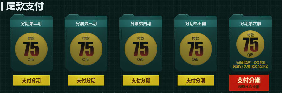 2.建议每月15日前完成当月分期付款,以免错过当月的分期付款,进而影响永久神器领取;