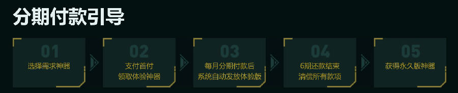 3.支付保证金后可即时获得30天的神器体验版,待完成所有分期付款后,可获得永久版神器;
