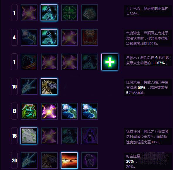 战斗动能(7) 和 狂风来袭(10) 是协同性极佳的两个天赋,让冷却时间本已仅有40秒的大招转得更加迅速。