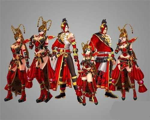 这是一套“美猴王”元素的服饰,并且进行了时尚性的改良设计和艺术化的加工设计,如女款头饰上就是艺术化的翎子等。共有中国红、经典黑以及贵气金三种主色调可供玩家选择,红色时装喜庆足,最百搭的黑色加入到春节时装中,在显沉稳的同时又不失魅惑美,而黄金质感的时装贵族气场全开之余,更是尽显人物的飒爽英姿,相信也会备受国服玩家青睐。