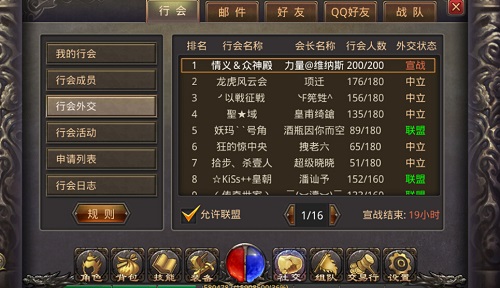然后,我们可以进行行会联盟和敌对,进行行会战争,这是热爱Pk的玩家的福音!