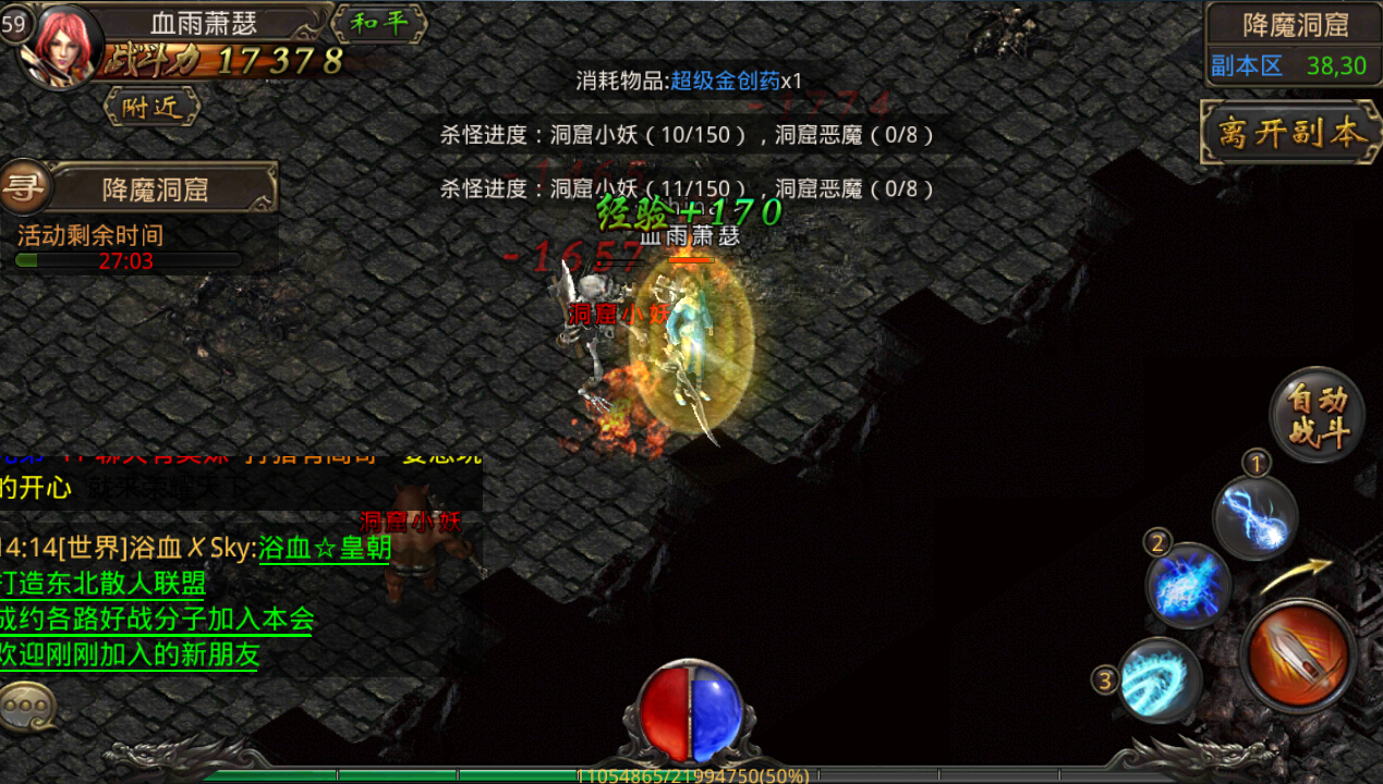 进入通道将被植入日常活动中,进入降魔洞窟后,大波大波的怪物将会出现,只有在限定时间内将它们全部击杀,才能继续前进或离开战场。