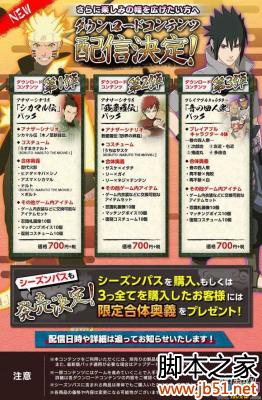 以上就是小编给大家带来的火影忍者究极忍者风暴4DLC发布价格介绍的全部内容了,希望大家喜欢,祝大家游戏愉快!更多实用攻略,更多最新消息请继续关注JB51!
