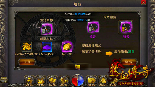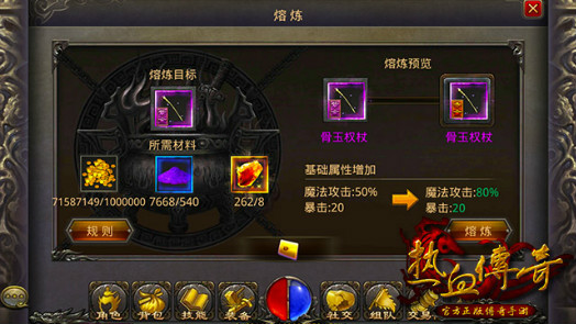 热血传奇手机版 武器熔炼属性和耗材详解
