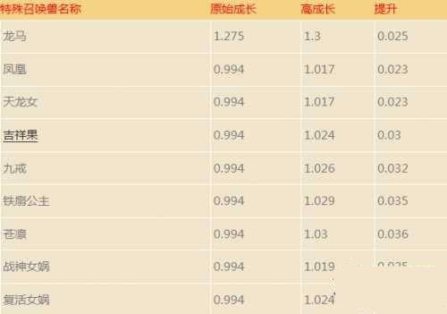 以上就是小编给大家带来的大话西游手游各个召唤兽成长上限成长值列表的全部内容了,希望大家喜欢,祝大家游戏愉快!更多实用攻略,更多最新消息请继续关注JB51!