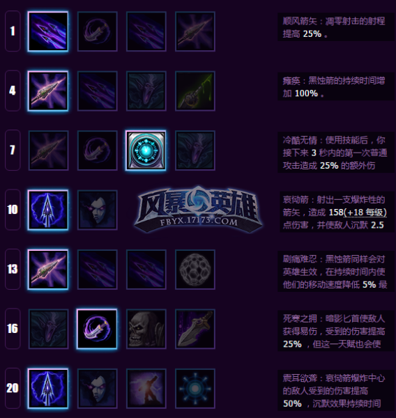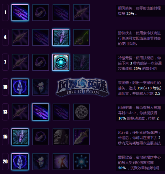 核心效果在4和13级时候两个技能,能够比较好的应付1V1的情况,16级的时候,加二技能,为的就是易伤的效果,变相的增加了团队的输出,在对面肉往前推进的时候,也会忌惮这个技能。