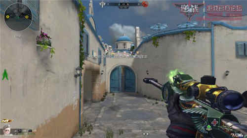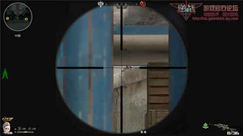 中路就是狙击手的天堂,大门中间是敞开的,为双方的狙击手对狙和侦察提供了良好的视野。同时,中路非常重要,是狙击手必争的地方。上图的点位是在守卫者出生地附近的大箱子上,跳上箱子可以卡无头点位,这样就可以防止对方玩得好的朱雀爆头,接下来谨慎观察对方动态就好。