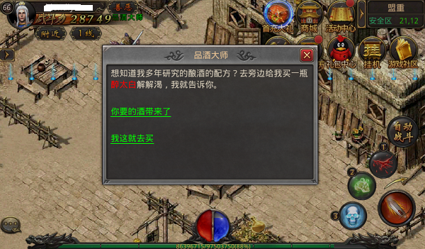 在盟重省的酒店老板处新增了一位叫做品酒大师的NPC,品酒大师非常喜欢核喝酒,玩家们只要给他带去醉太白,他会告诉玩家们酒中的秘密和所有品质酒的酿造配方。