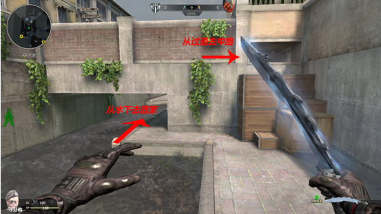而选择走水下又会出现分路的选择,那么当玩家选择走入水下的时候个人建议枪口还是预瞄着对方的水下方向,因为对方即使速冲也很少有人会选择从右手的过道出现,一个正确的预瞄点是保证自己能够有效还击的前提条件。至于这两条路选择从哪条路去匪徒家就看玩家们的心情了,不过个人觉得从水下走收获人头的几率大点。