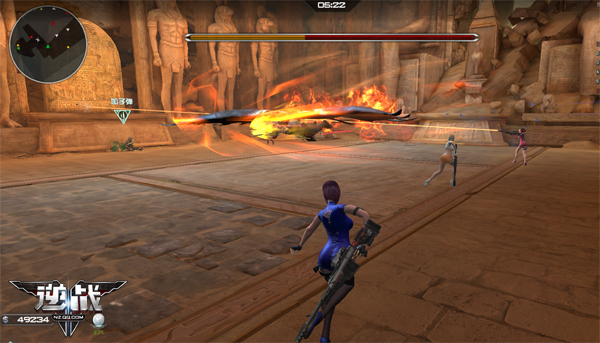 3.第三个攻击方式是全身带着火焰进行低空飞行冲撞玩家,如果玩家被碰到,那么立马就会被秒杀。而躲这个攻击的方法是当你看到boss双脚踩到地上,就预示着boss的这一个攻击方式即将发动了,这时你千万不要站在boss正面。只要你一看到boss面对你并且双脚碰到地上时,必须赶紧以最快的速度一直往boss的侧面跑,这样才能顺利躲过。