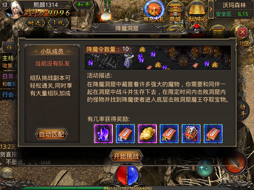 降魔洞窟是我们50级之后获得紫装的最快来源,通过通关获得的200精魄,我们可以在铁匠铺抽奖,20个一次,而且紫装几率非常高,一般是3-4次一件紫装或者绿色套装,还有几率抽出无级别的顶级装备。并且五人组队一次通关的时间在10分钟以内,一天可以进行五次挑战,就是说只要完成一天的副本量,我们就可以获得50次以上的抽奖机会,而且还有几率打出紫装和技能秘籍。所以降魔洞窟是我们一天进行活动的首选!