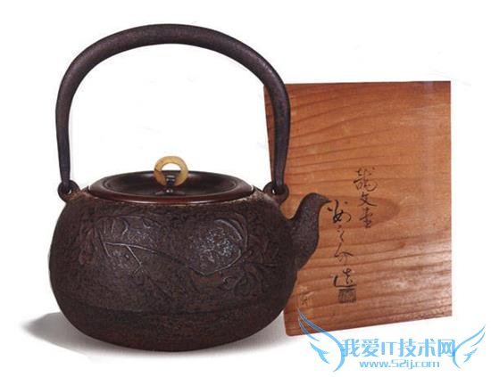 (叶纹铁瓶,明治初期龙文堂名人安之介作。在日本的铁壶堂号中,“龙文堂”被誉为日本第一堂号)