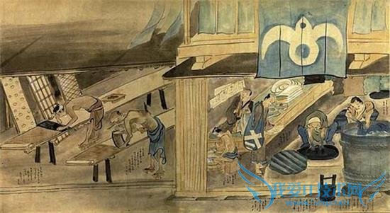 (《近世职人尽绘卷》中的蓝染匠人)
