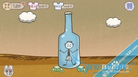 这关还是挺简单的,玩家需要做的就是疯狂的摇动手机,把瓶子摔破即可通关!