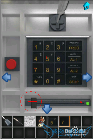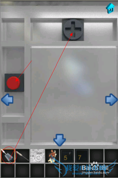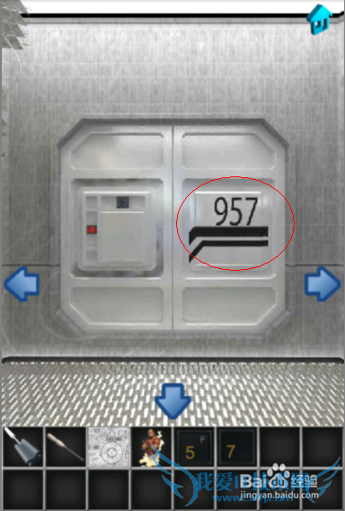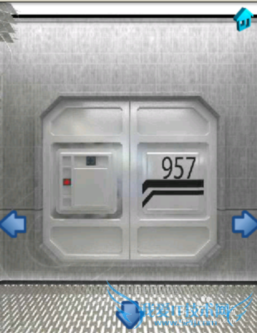 首先来到门开,看到门上的数字957,想也知道这个是线索一,密码提示了。点门上的按钮进去,有个+字和红色按钮,我按,我按,我按按按,按不动。出不去??直接出去就不好玩了。我们去找线索其他2345678!