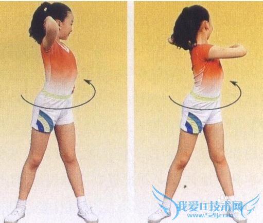 1.体转运动(共四个八拍,先正常转两个八拍,再头转与腰转方向相反两个八拍)
