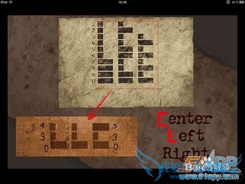 将桌面上的数字和墙上的壁纸结合,既可以知道暗号的密码为:LLCLCL,即:左左中左中左(L=left、C=center)其中LLC对照数字430一下只给出430的图形密码依照此方法你应该知道530是多少了吧?按照此方式打开抽屉,一定是要女孩读出来。请看下图: