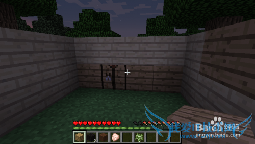 这么一番折腾以后,你也有了36块左右的木板。(Lz多挖了一个,所以有40块)这是你就能发现了,不同的树木,树木方块的颜色也不一样,也不能重叠。(提示:MC大部分物品都可以重叠64个) 把你所有的木板放到快捷栏上并选中,右键建造我们的家吧!对于小白,内部4x4的空间已足够了。下图就是我未完工的家==(为啥说未完工?后来我会完善这个家的——这样安全性太差!)