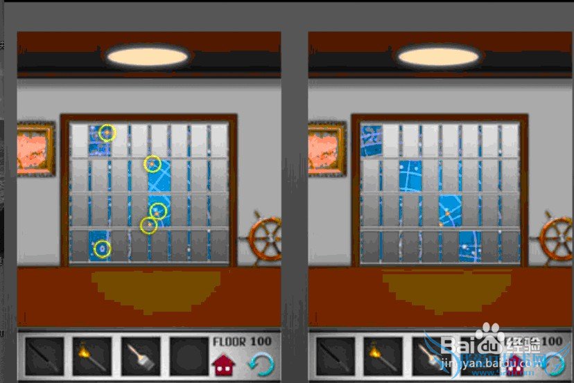 1。第一个黄点的坐标是(0,7),向右轻拉和移动第一薄板在第一行改变它到一个宽板。左边的宽板,没有为0。右侧的宽板,为7。因此,这行代表的坐标。2。同样的方法也适用第二个点。第二黄点是(2,5)。向右轻拉和移动第三薄板在第二行改变它到一个宽板。因此,将会有左边为2,右边为5.3。第三点是(4,3),轻拉和移动第五薄板在第三排将它更改为一个宽板。4。第四点是(5,2),移动第六薄板在最后一行将它更改为一个宽板。5.恭喜你,你已经完成了原版100 FLOORS!