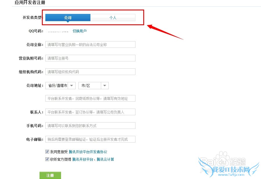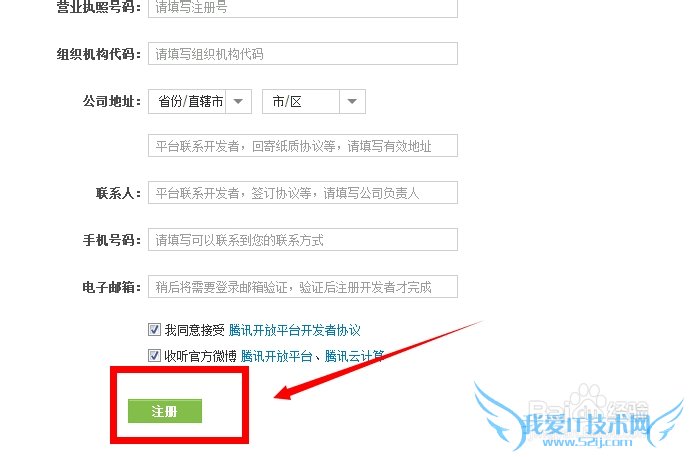 选择完成之后,我们自然要选择注册,但是提醒大家一句,在点击注册前,一定要看看下方的腾讯开放平台开发者协议,确定没有问题就可以完成注册啦!