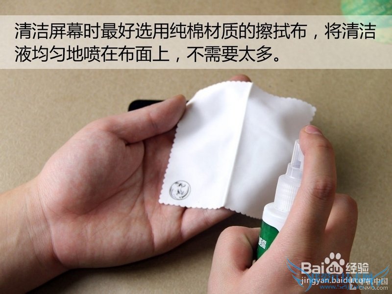 擦屏幕是准备工作中的重要环节,清洁液并不需要喷太多,多了反而会影响擦拭屏幕的效率,有时还会因为屏幕上过于湿润而沾染灰尘。