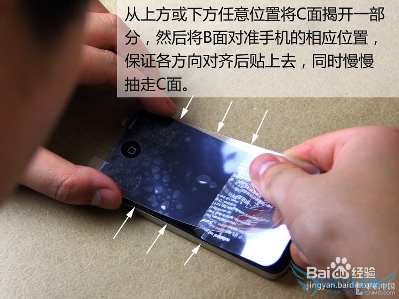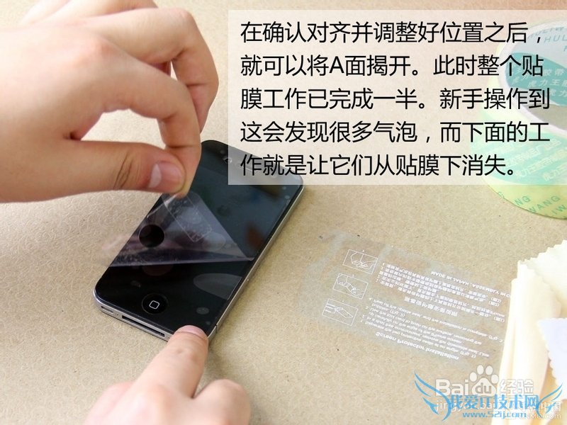 如果是在贴上后才发现错位的话也不要紧,只需将B面再次揭起来,然后重新比对贴上去就行。在这个过程中,注意不要让灰尘进入到屏幕和贴膜之间。