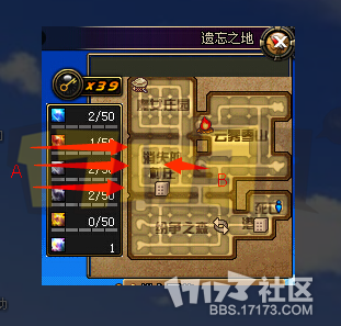沿着红色线路走,红色线路尽头消灭了绿名怪后继续左走,可以进入boss房间。