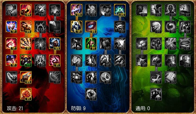 因为Q以及被动的存在,螳螂前期的伤害十分可观,因此点出21点攻击力能让他前期打出更高的爆发,9点防御天赋则能有效减少他受到的伤害。而点出咒刃编织这两个点,这样是在线上抓人的时候,提供了友方的伤害输出,当然危险游戏这一点,是在支援时,尽可能的打出自己的伤害。