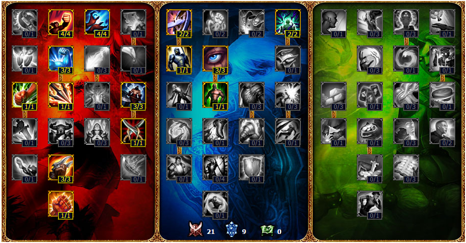 答:没什么改动。还是标准的21~9~0的天赋加点。不要加攻击速度。改成加冷却就好了 >>详细
