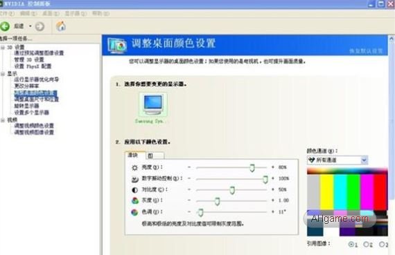 调整桌面颜色质量,第一个80,第二个(振动)100,最后一个(对比度)11。