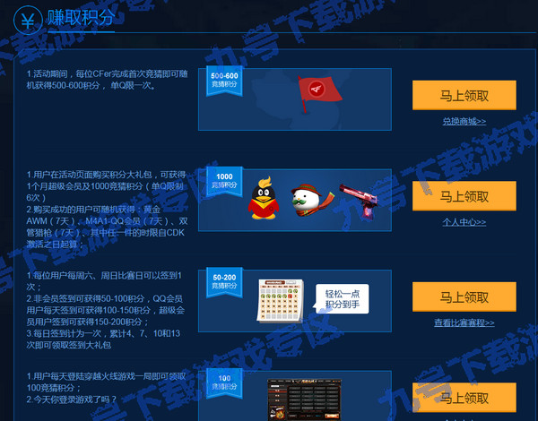4.用户每天登陆穿越火线游戏一局即可领取100竞猜积分;