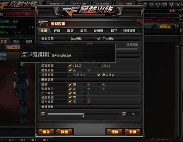 7.最后进游戏再把游戏里的屏幕分辨率调到800乘600 16位颜色就OK了,你就可以尽情的去虐人了,效果绝对很好,白色烟雾基本无视。(这个难点)