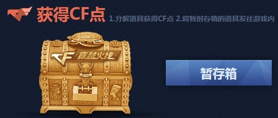 4、获得的道具存放在【暂存箱】中,可选择分解成CF点或发往游戏仓库;