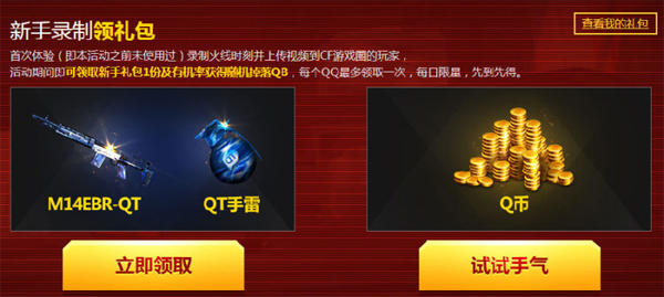 大家可以通过录视频活动丰厚奖励,运气好的话也可以领取到M14EBR-QT,下面活动内容地址不要错过哦。