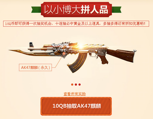最近CF官方放出了新的探寻王者宝藏活动,大家可以通过有限的Q币来兑换永久天龙和麒麟,当然还有永久黄金武器等奖励,如果相信自己运气的话,不妨试试这次活动。