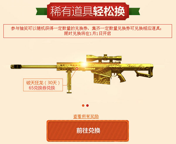 参与抽奖可以随机获得一定数量的兑换券,集齐一定数量兑换券可兑换相应道具;限时兑换将在1月1日开启。