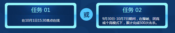 玩家在以下两个任务中任选一个完成,次日即可领取翔龙大礼包和黄金大礼包各一份。翔龙大礼包将以7天期限分两次发放,第一次在玩家领取当天发放,第二次在玩家领取后的第八天发放。如果玩家两个任务均完成,则次日可以领取一份国庆超级礼包。每个礼包活动期间仅限领取一次。