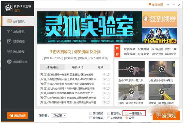 首先:CF百宝箱软件界面能看到一键烟雾头选项