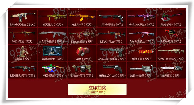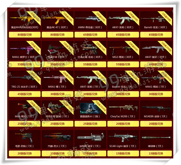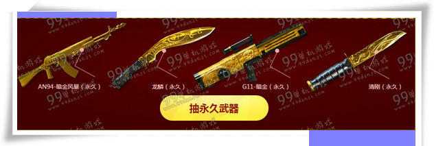 在铜板收集模块中累计获得100个铜板的玩家,可以免费抽取一件永久黄金武器。抽取黄金武器不消耗铜板,但每个QQ号活动期间仅限抽取一次。