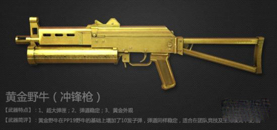 答:武器特点:1、超大弹匣;2、弹道稳定;3、黄金外观武器简评:黄金野牛在PP19野牛的基础上增加了10发子弹,弹道同样稳定,适合在团队竞技及生化模式中使用。 >>详细