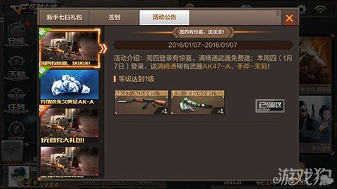 CF手游周四登录有惊喜活动来袭_满精通武器送送送哦