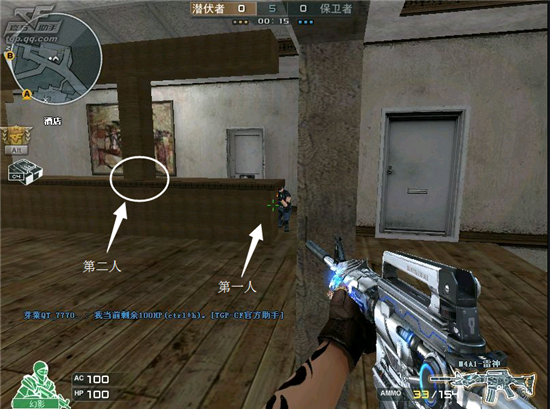 第二人跟上第一人,视角主看中路。千万不能在露身对枪。